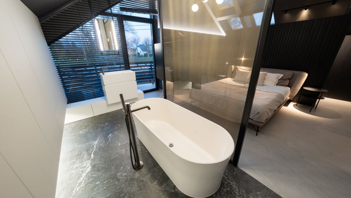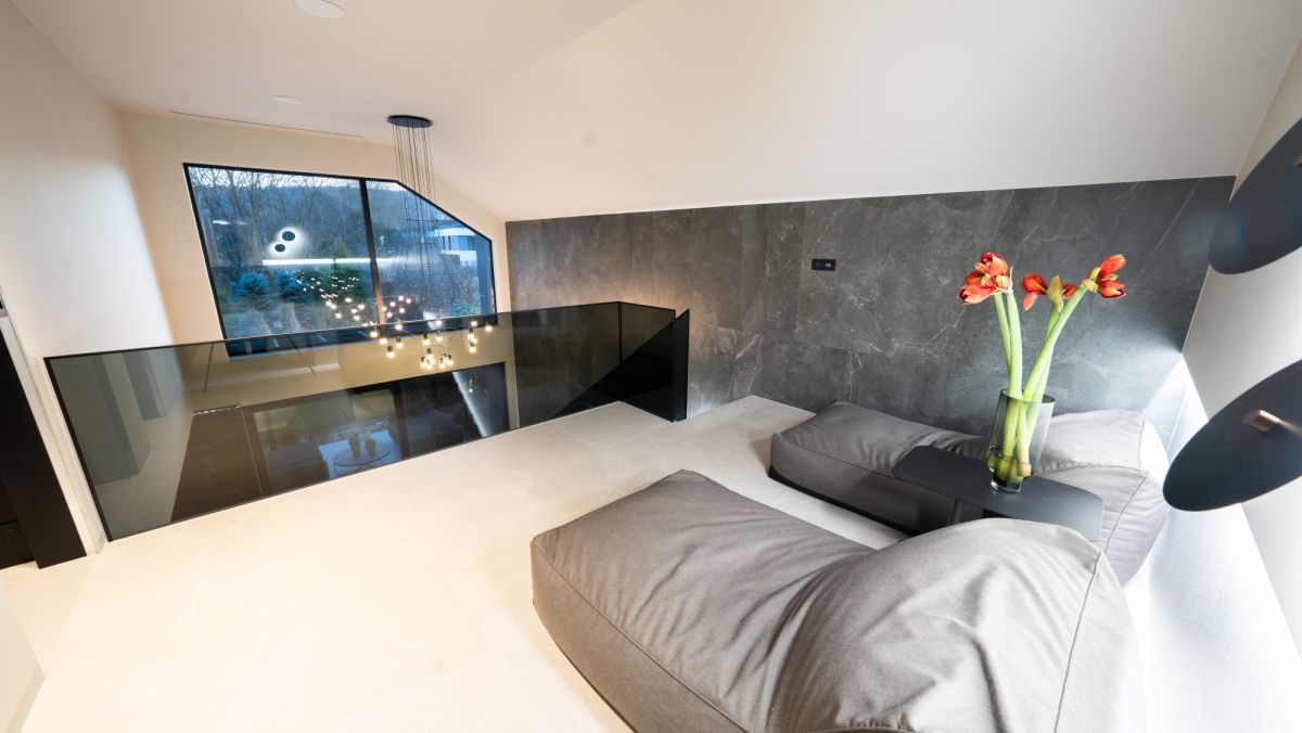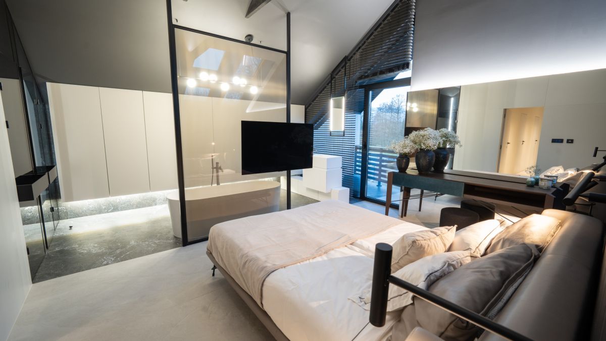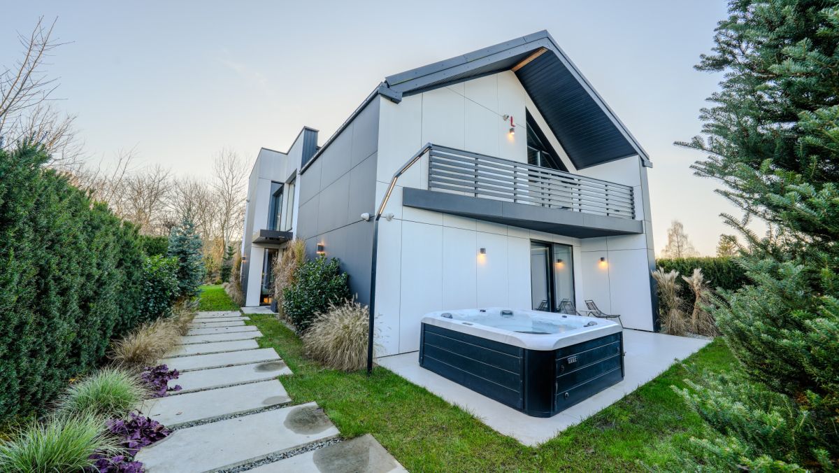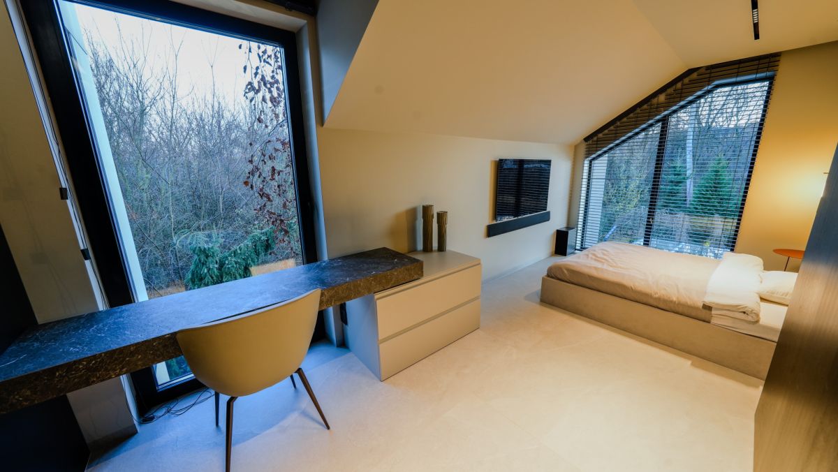 Dom został zaprojektowany i wykończony w wysokim standardzie, z naciskiem na jakość, funkcjonalność i ponadczasową estetykę z wykorzystaniem najwyższej klasy materiałów oraz wyposażenia światowych marek. Wnętrza umeblowane są meblami renomowanych włoskich producentów, a całość dopełnia architektoniczne oświetlenie i starannie dobrane detale wykończeniowe, takie jak stolarka z czarnego dębu, spieki kwarcowe i naturalne drewno. Kuchnia wykonana na indywidualne zamówienie, z wyspą i pełnym wyposażeniem AGD Miele, harmonijnie łączy estetykę z funkcjonalnością, podobnie jak reprezentacyjny salon o wysokości dwóch kondygnacji i komfortowe sypialnie. Integralną częścią domu jest prywatna strefa SPA z wewnętrznym basenem i jacuzzi, zaprojektowana z myślą o pełnym komforcie akustycznym i klimatycznym. Całość uzupełnia zaawansowany system inteligentnego domu, który w jednej aplikacji zarządza wszystkimi urządzeniami oraz systemami bezpieczeństwa. Rezydencję otacza zaprojektowany ogród z elegancką infrastrukturą wjazdową.