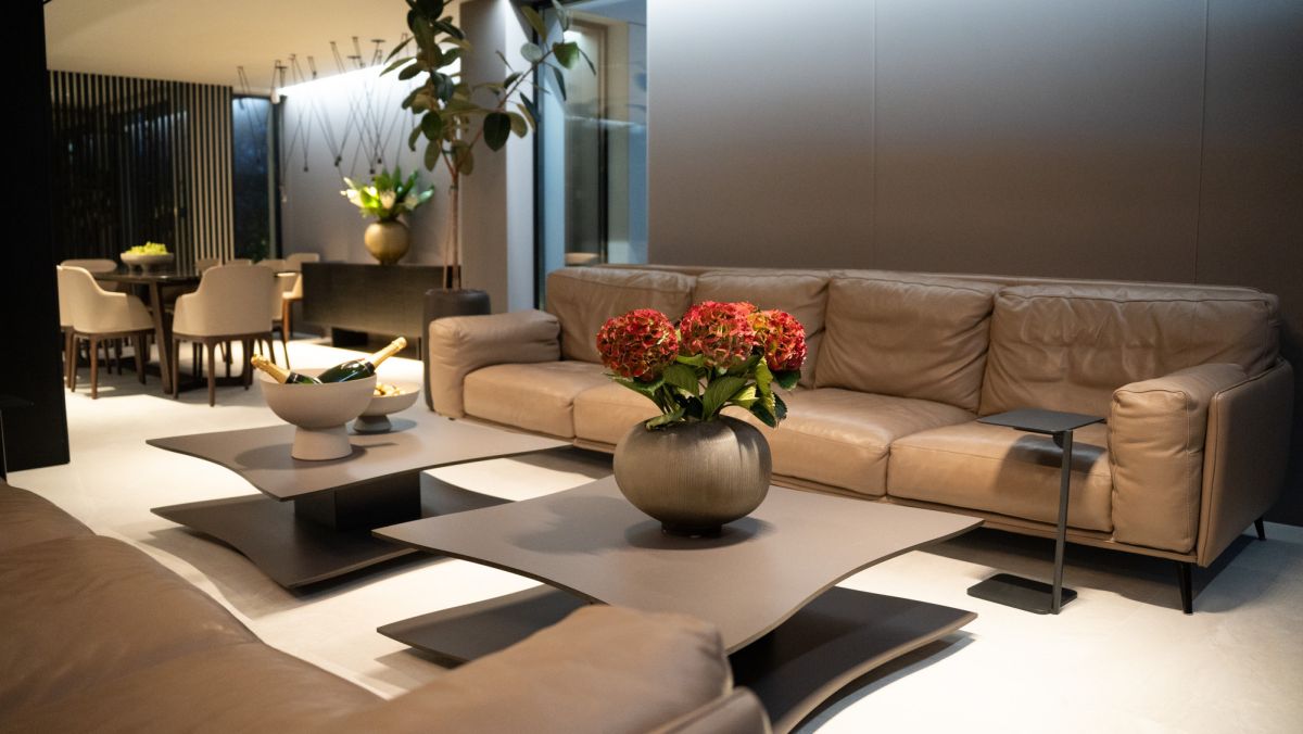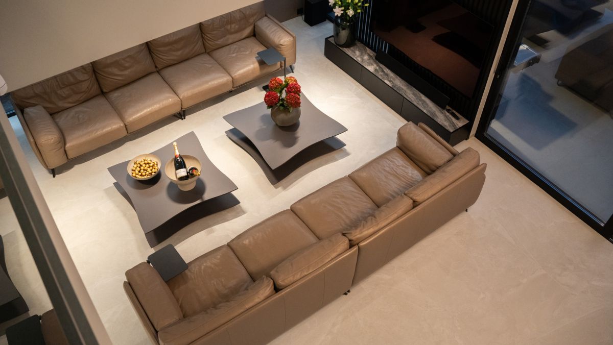 - przestronny salon o powierzchni 76m² m.in. z włoską sofą Ditre Italia, stołem i krzesłami Poliform,