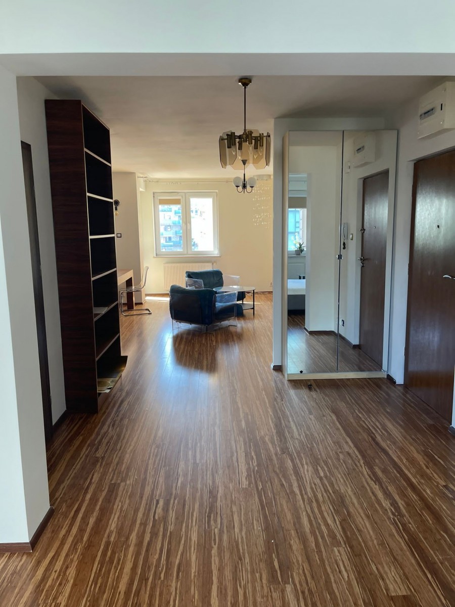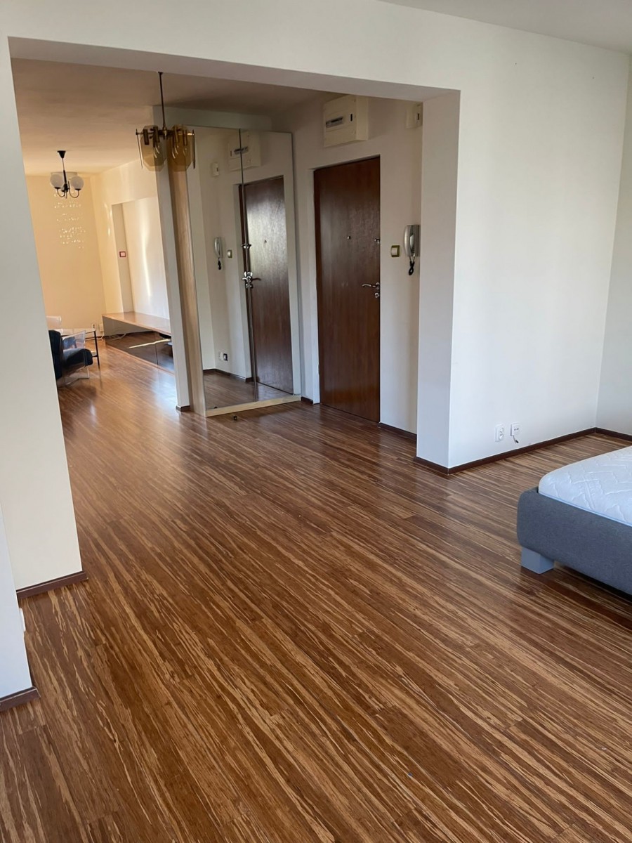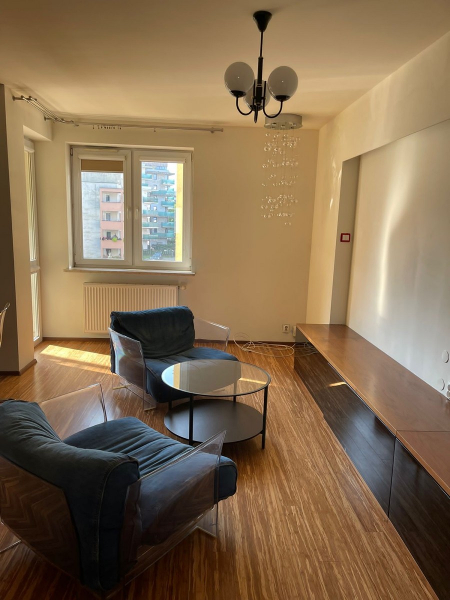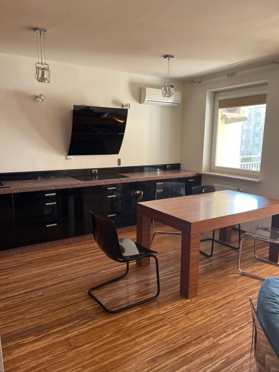 - jasny salon z aneksem kuchennym oraz wyjściem na balkon,